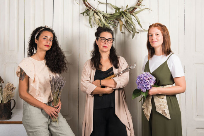 Las Flores de Greta es un proyecto formado por tres mujeres que han fusionado sus capacidades y energías con el fin de elaborar prendas compuestas por tejidos de origen natural, creadas de manera consciente y estampadas mediante ecoprint, con las formas y colores de la naturaleza.