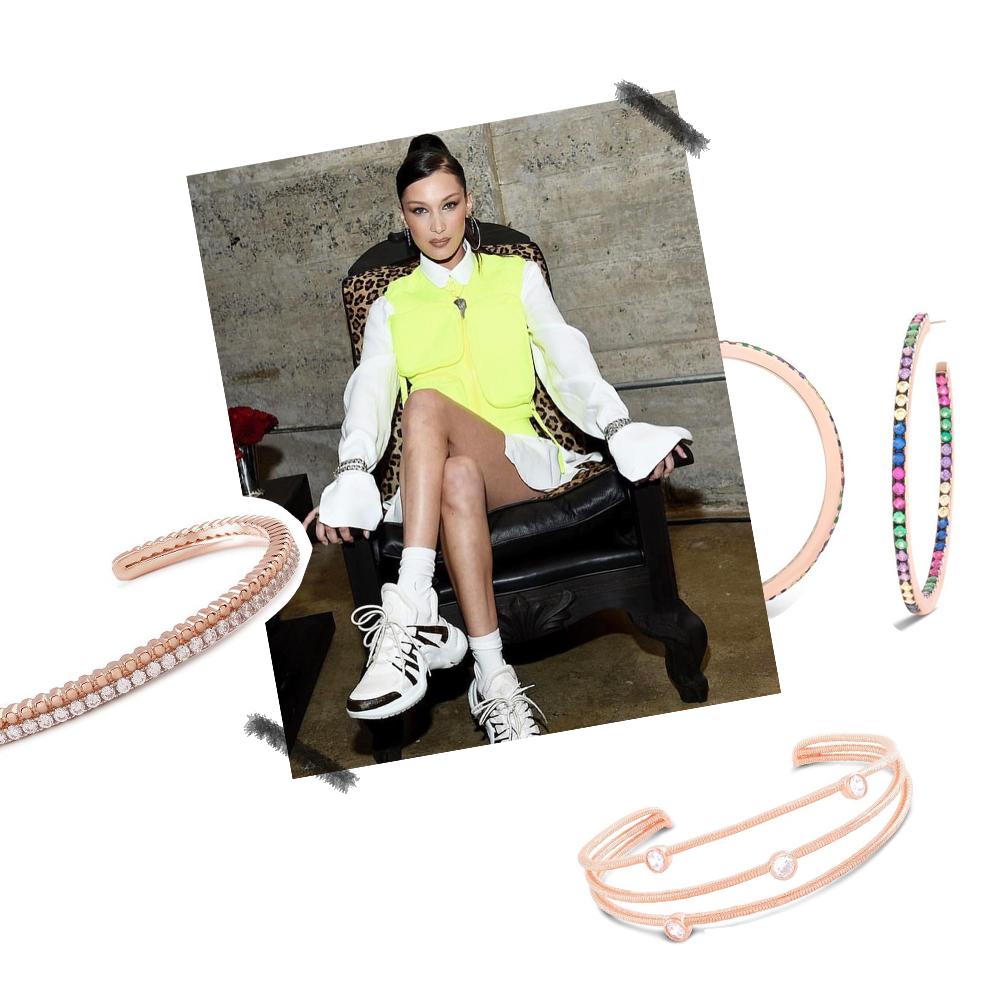 Bella Hadid vuelve a cautivar la miradas de fotógrafos y fashionistas a golpe de un look de lo más arriesgado: una camisa en versión vestido y un chaleco fluorescente. Pero son varios detalles los que elevan este look al máximo, confirmando que las joyas vuelven a tener el poder.