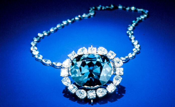 El destino del diamante Azul, que antes de ser tallado pesaba 111 quilates y que Jean Baptiste Tavernier –a quien se puede considerar el padre del comercio de diamantes moderno– llevó a Francia desde India, fue muy azaroso. La gema azul en forma de corazón fue robada durante la Revolución Francesa, reapareciendo en Londres en 1812, cuando un comerciante lo hizo tallar de nuevo para facilitar su venta. El corazón, de 69 quilates, se convirtió en una piedra oval de 45 quilates. Hacia 1839, lo compró Henry Philip Hope, y por eso se conoce hoy como el diamante Hope. Desde entonces, adquirió un nuevo tipo de celebridad debido a las desgracias que sufrieron sus sucesivos propietarios. En 1958, el joyero neoyorquino Harry Winston se hizo con la pieza y la donó al Instituto Smithsonian de Washington.