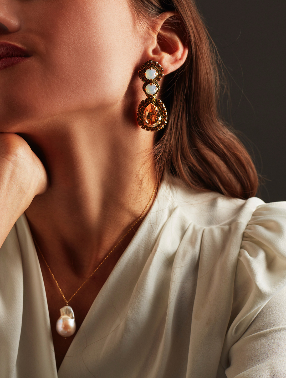 Los cristales de Swarovski y de Bohemia, las perlas de agua dulce y barrocas y los corales son los elementos protagonistas de sus dos últimas colecciones: The Gatsby Collection y The Pearl Collection.