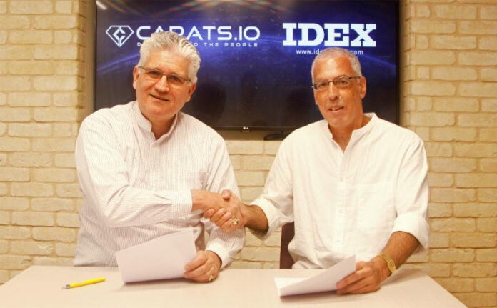 Carats.io y la plataforma online de venta de diamantes, IDEX – International Diamond Exchange, anuncian la firma de un acuerdo que permitirá la colaboración de ambos en las áreas de análisis de datos, así como el desarrollo de nuevas finanzas tanto para la industria del diamante como para el público en general. Estos se basarán en el índice Diamond Financial (DFX) de Carats.io y su moneda CARAT, que es la primera criptomoneda del mundo totalmente respaldada por diamantes reales.