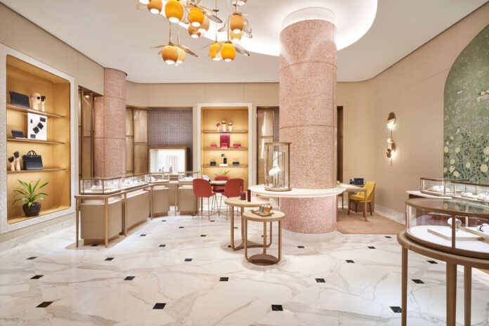 Cartier inaugura durante este mes de noviembre una nueva boutique ubicada en Galería Canalejas. El complejo de ocho edificios rehabilitados se ha convertido en el nuevo icono del lujo en la ciudad de Madrid. La maison despliega su universo en 170 metros cuadrados en los que se aúna un concepto innnovador de lujo contemporáneo «con detalles de artesanía, tapicerías bordadas, boiseries y molduras con toques dorados que nos recuerdan a la nobleza y la elegancia de la cultura madrileña«, explican desde la casa. En la estancia principal tendrá un especial protagonismo un gran tapiz donde están representados el Real Jardín Botánico en su fondo como símbolo de Madrid y la pantera como animal emblemático de Cartier.