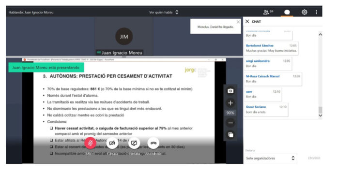 Hasta 93 personas acudieron a la convocatoria virtual del Col.legi de Catalunya, entre ellas, incluso de otras partes de España, ya que este organismo optó por hacerla abierta. El objetivo, aclarar dudas ante las medidas económicas generadas por el COVID-19.