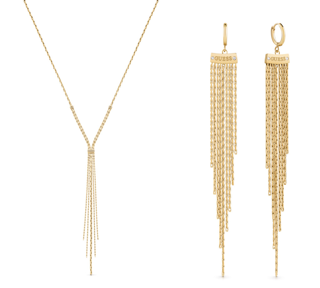 SI esta temporada es la de los brillos y las lentejuelas en cuestión de moda, no iba a ser de otra manera en materia de joyería. Guess nos presenta piezas clásicas que marcan las ocasiones especiales. Pendientes largos con multicadenas y un collar en forma de Y, formas clásicas pero muy en tendencia esta temporada o, dicho de otra manera, las joyas con las que acertar seguro.