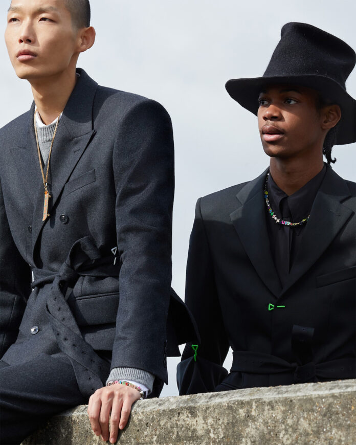 En Fendi FW22, clásicos de la joyería se reinventan para dar vida a piezas masculinas (o sin género), diseñadas por Delfina Delettrez. Gargantillas con perlas o cristales brillantes, pendientes irregulares, cadenas infinitas… «Símbolos eternos de sofisticación» que forman un joyero impecable.