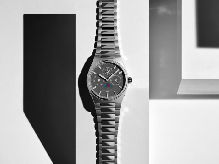 Por su parte, el modelo RedBar Highlife Perpetual Calendar Manufacture presenta el movimiento manufactura FC-775 con un calendario perpetuo con una decoración perlage y Côtes de Genève circular, que tiene una reserva de marcha de 38 horas y vibra a 28.800 alt/h. Comparte con el otro modelo el tamaño de la caja, de 41 mm, y está hecha de acero inoxidable pulido. La esfera, también gris oscuro y agujas plateadas pulidas a mano, se diferencia por contadores con agujas blancas y una llamativa fase lunar de color roja para rendir homenaje al logotipo del Grupo RedBar que aparece en la parte posterior de la caja de cristal de zafiro.