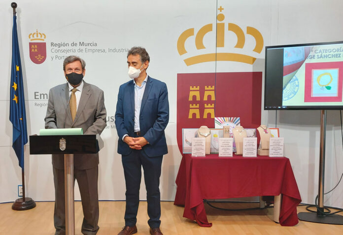 El Gremio de Joyeros de Murcia presentó ayer oficialmente la segunda edición del concurso de dibujo “Demuéstrale tu amor. Diseña una joya”. En la imagen, el presidente del Gremio de Joyeros, Plateros y Relojeros de la Región de Murcia, José J. Del Campo González, junto a Miguel Ángel Martín Martín, director general de Comercio e Innovación Empresarial de esta comunidad autónoma, que subvenciona el proyecto. La gran acogida dispensada en la primera edición ha propiciado esta nueva convocatoria en la que se pretende «fomentar la expresión artística desde muy temprana edad y despertar entre los escolares la curiosidad por el mundo del diseño«.