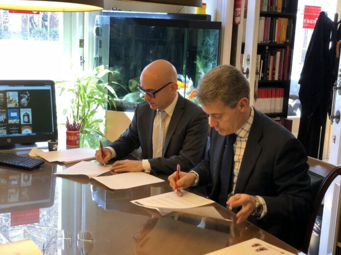 El presidente del Colegio Oficial de Joyeros, de Orfebres, de Relojeros y de Gemólogos de Catalunya (JORGC), Álex Riu y el presidente del Museo Internacional de Alta Relojería de Bolsillo (MIARB), José Daniel Barquero, han firmado un acuerdo de colaboración para dar a conocer todo lo relacionado con el arte de la relojería y sus valores históricos.