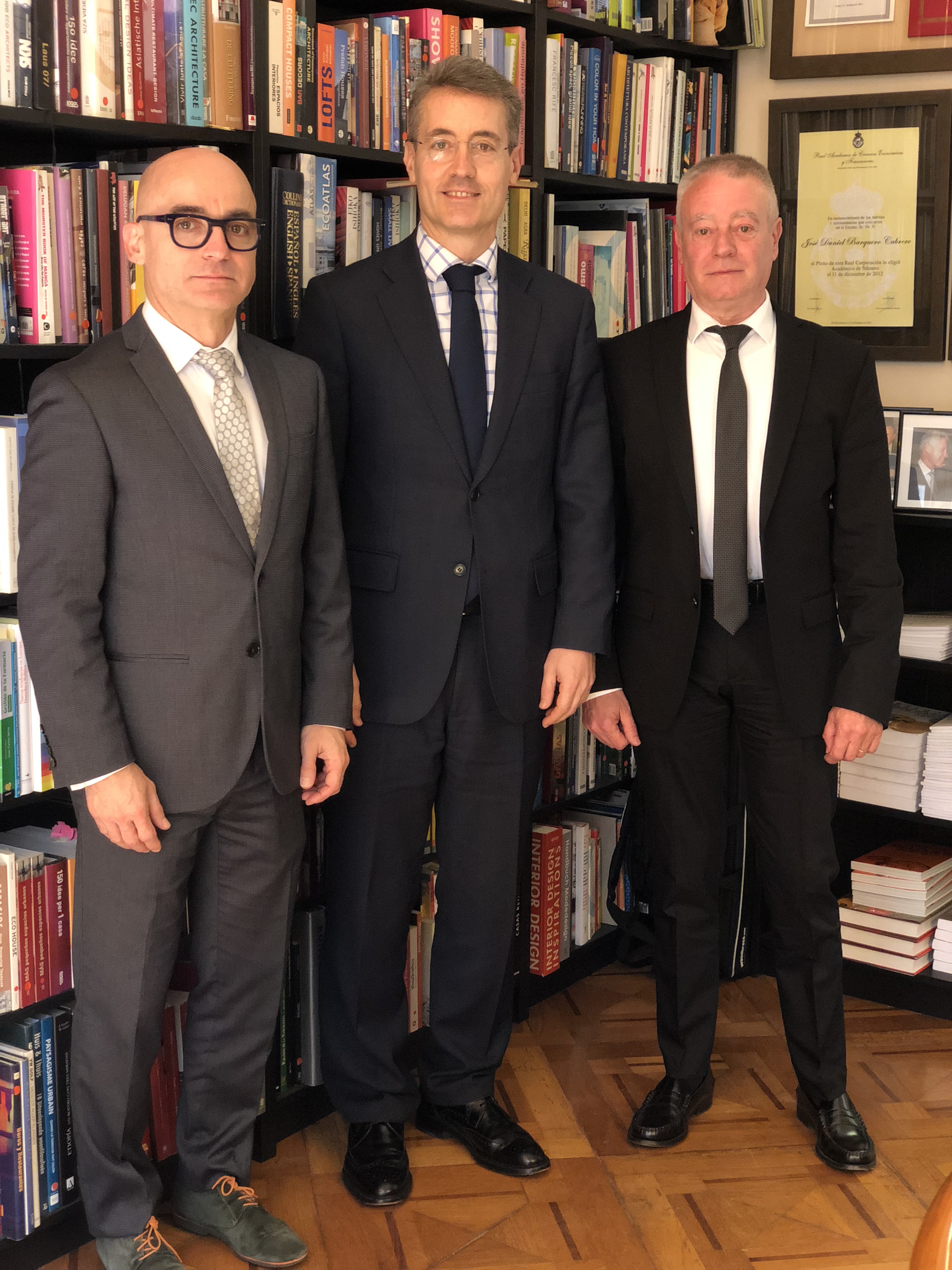 Riu y Barquero acompañados de. Alfred Peris, Presidente de la Sección de Relojería del JORGC.