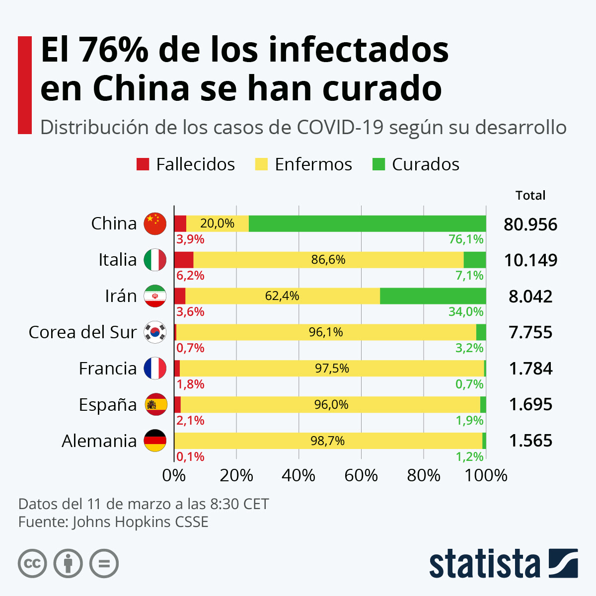 Aunque la situación en China está controlada, así es como el coronavirus afecta ahora mismo a diferentes países: