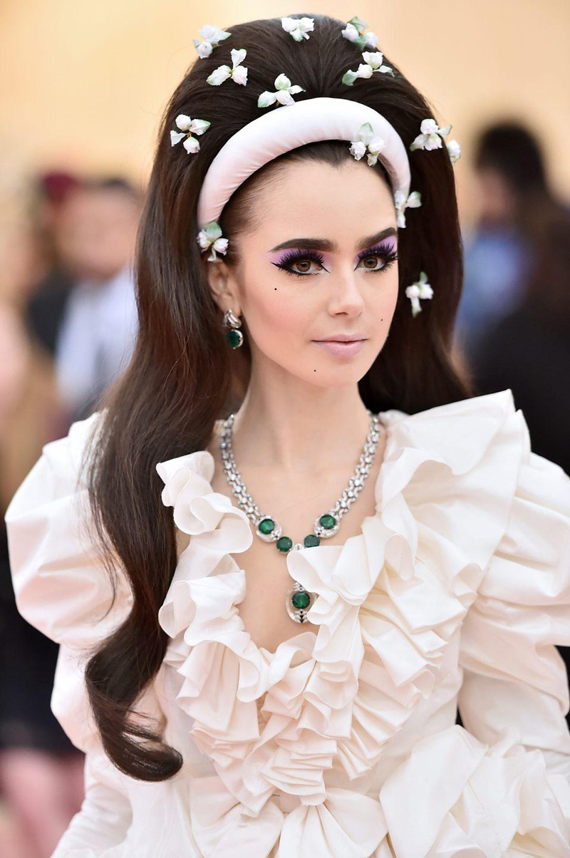 Las esmeraldas son una de las piedras preciosas que más brilla en la alfombra roja, y Lily Collins sabe de lo que hablamos. Entre su vestido y sus espectaculares joyas, puede ser una de las mejor vestidas. La actriz lució un Giambattista Valli, inspirado en el look nupcial de Priscilla Presley en 1967, que ya vimos en el desfile de Alta Costura en 2016 que acompañó con unas piezas de Cartier muy especiales. La nueva colección de la casa, Magnitude, debutaba en esta gala y Lily lució un collar y unos pendientes emblemáticos de Cartier compuesto por esmeraldas, onyx negro y diamantes brillantes.