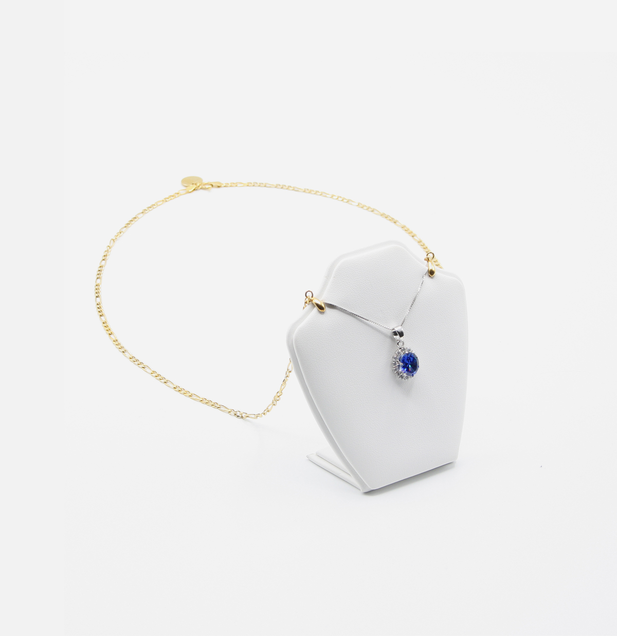 De esta manera, un expositor de joyas se convierte en un collar el cual, a su vez, sigue lucieron una espectacular gargantilla o la tradicional caja que emplean los gemólogos para guardar las piedras preciosas en forma de collar.