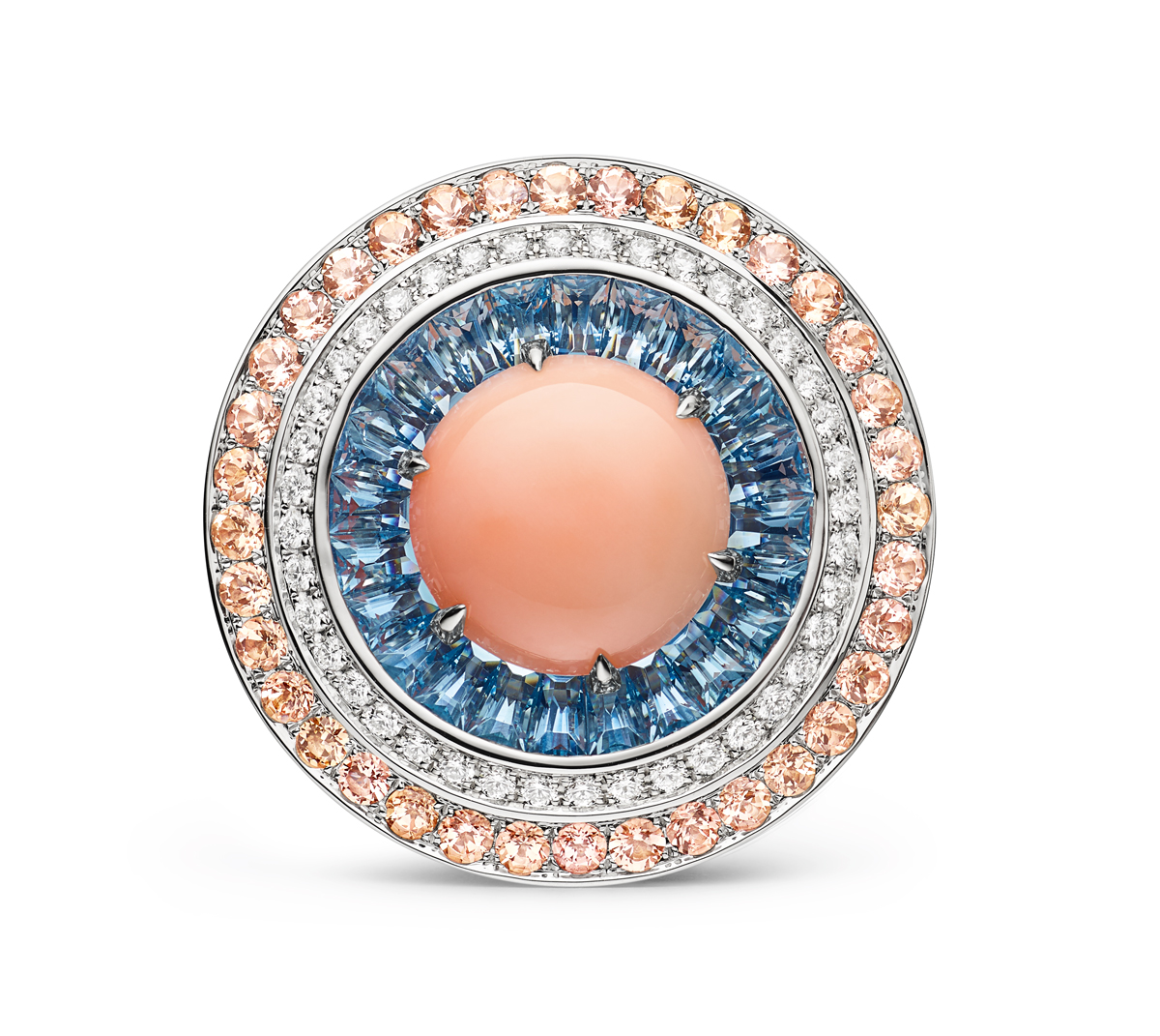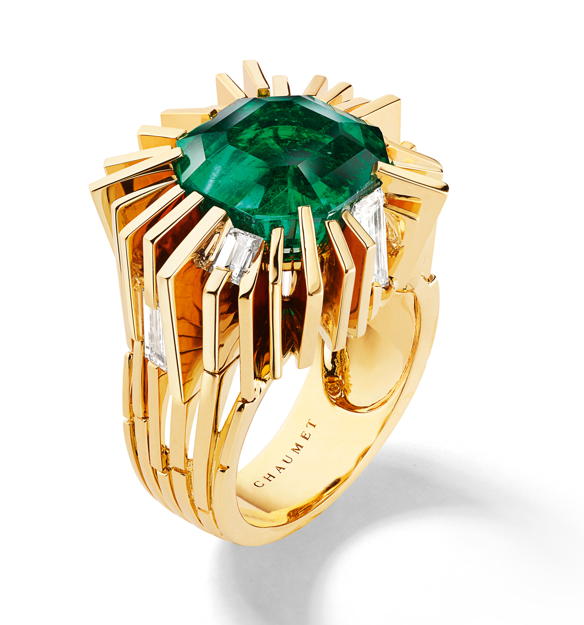 Por último, el oro pone de relieve piedras extraordinarias -esmeraldas colombianas, zafiros birmanos, ópalos australianos que parpadean hipnotizadoramente- cuidadosamente seleccionadas por su rareza y la riqueza de su tonalidad, creando composiciones preciosas y armoniosas que expresan el renombrado arte del color de Chaumet.