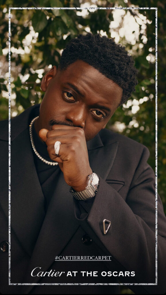 La actriz Carey Mulligan eligió también un espectacular vestido de Alta Costura de Valentino a juego con unos pendientes y un anillo de Cartier. La firma de alta joyería también puso el broche de oro en Daniel Kaluuya con un collar de diamantes, un reloj Skeleton Santos y un anillo. Tampoco pasó desapercibido Leslie Odom Jr., con una traje, de la firma Brioni, confeccionado en oro de 24 kilates y anillo de Cartier.