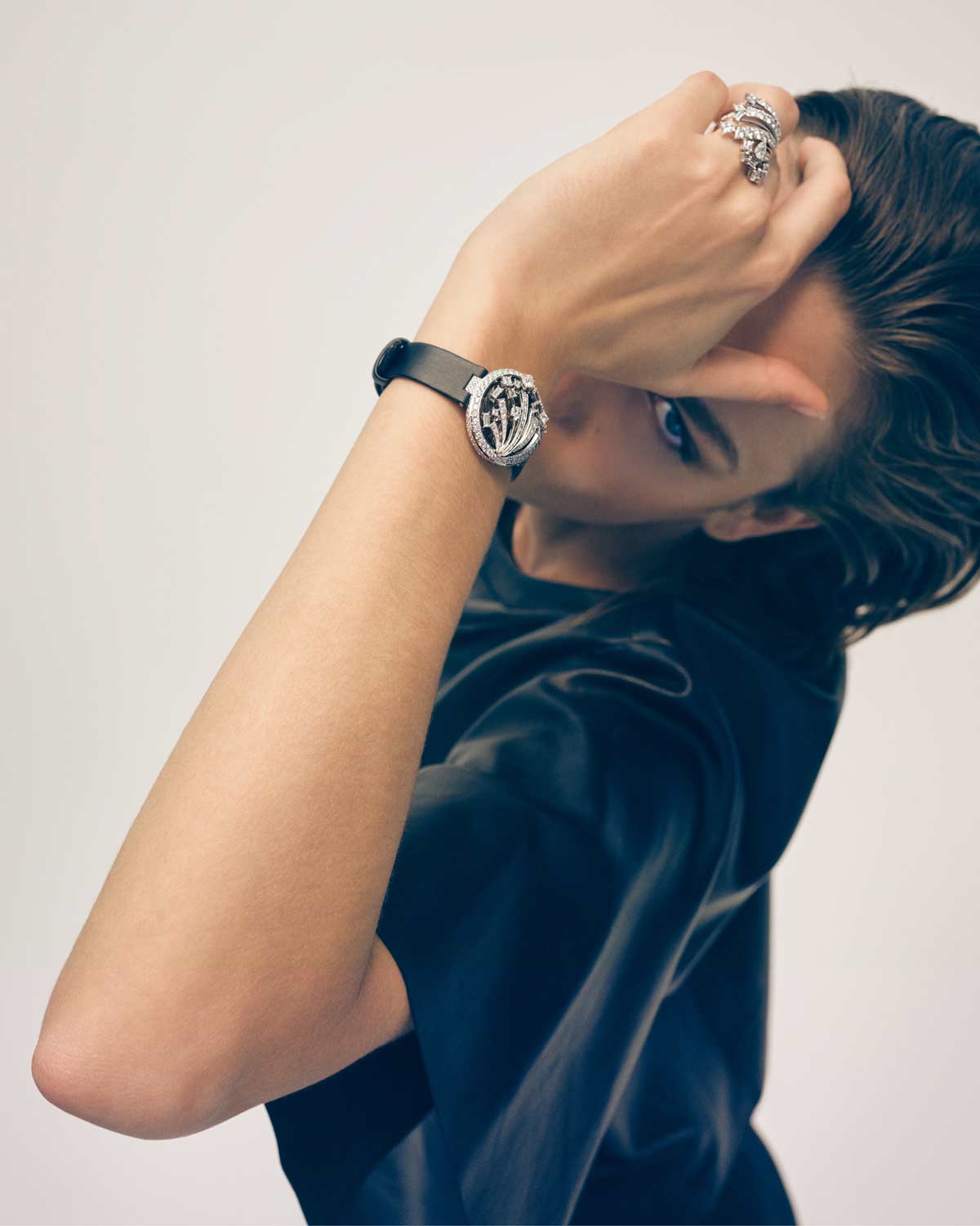 Con Déferlante, la nueva colección cápsula de Alta Joyería, la Maison Chaumet escribe un nuevo y espectacular capítulo. Capturadas en movimiento, las olas que rompen animan las ocho piezas que componen el set, que incluye un reloj secreto.