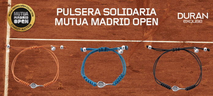 Además de esta subasta, Durán Exquse y el Mutua Madrid Open lanzan la pulsera solidaria XX aniversario, disponible en tres colores (azul, naranja y negro) y que se puede adquirir en la joyería Durán de la calle Goya 19 de Madrid, así como en su página web (www.duranexquse.com). Igualmente puede comprarse a través de la tienda online del Mutua Madrid Open (www.mutuamadridopen.com) y en las 5 tiendas oficiales del Mutua Madrid Open de la Caja Mágica.