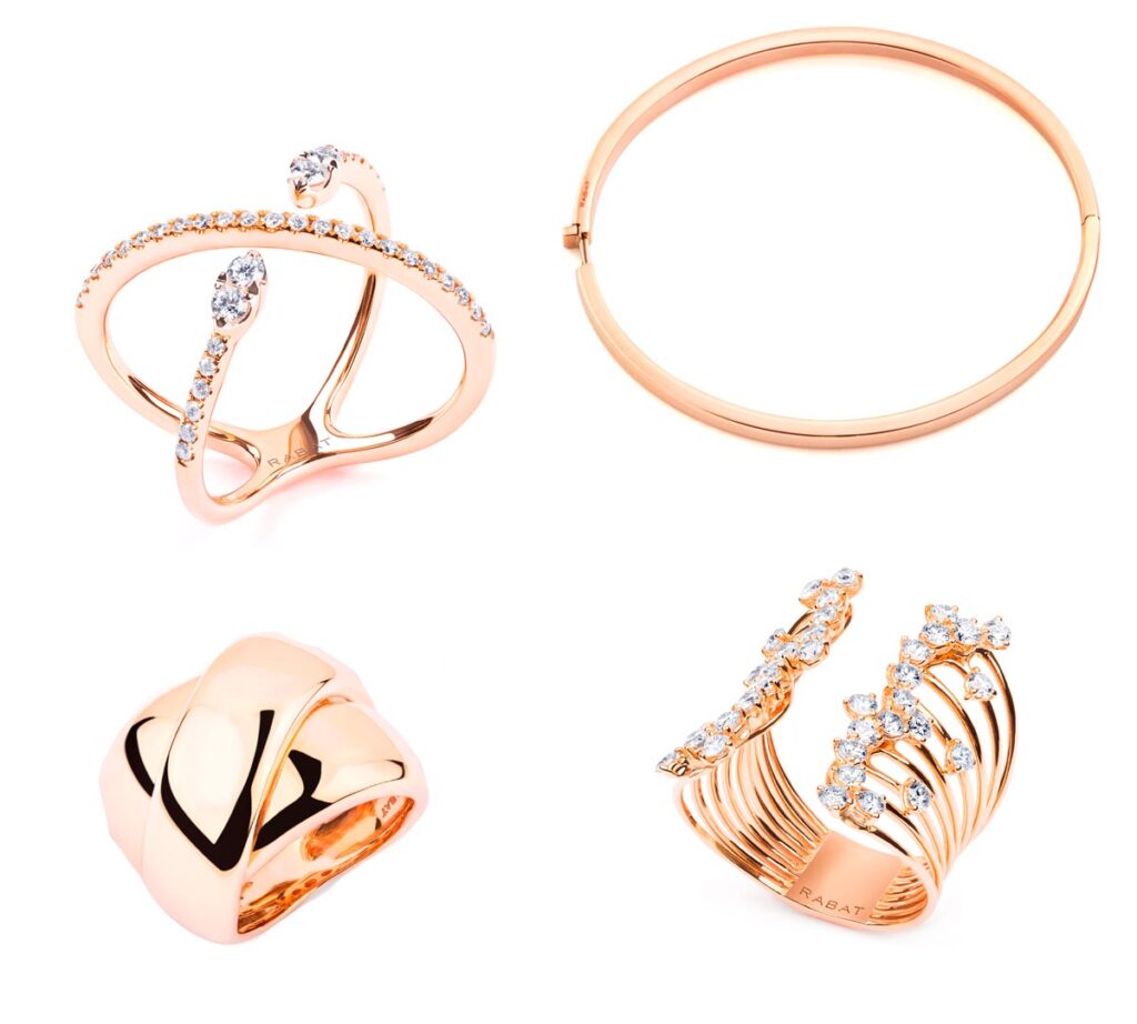 Natalia de Molina ha deslumbrado con unas criollas con onda en oro rosa y una combinación de tres anillos tubogas de oro rosa: uno con detalle de pavé de diamantes talla brillante, otro en espiral también con detalle de pavé de diamantes talla brillante y el tercero de filas entrelazadas con rivière de diamante talla brillante.
