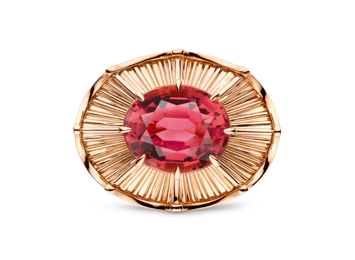 Chaumet revive esta tradición amorosa con una colección especial en la que el rigor arquitectónico se une a la pasión. Desde París hasta China, desde Japón hasta Oriente Medio, los anillos “Trésors d’Ailleurs” son un intenso testimonio de la riqueza de las culturas que siempre han inspirado a la Maison. Una declaración virtuosa expresando el savoir-faire del taller de Alta Joyería del número 12, de Place Vendôme. En un equilibrio entre audaces volúmenes y finos detalles, estructuras lineales y curvas femeninas, estos anillos monumentales se asemejan a objetos de arte decorados con una interacción inesperada de materiales y sutiles acordes tonales entre las piedras centrales y laca de ornamentación.