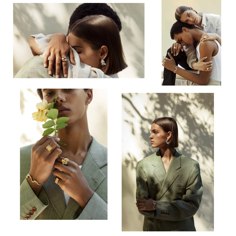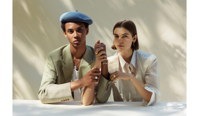 Un hombre y una mujer abrazados con fuerza, vistiendo joyas de la misma colección. La última campaña de la joven empresa francesa Persta transforma un cálido abrazo en un manifiesto, cuyo objetivo es expresar los valores de vinculación y compartir a través de una mirada que parece favorecer la fluidez de los géneros. Esta colección restablece nuevas reglas de estilo y desmantela códigos con anillos y collares de formas simples, embellecidos con diamantes y perlas. (Sí, también para hombres).