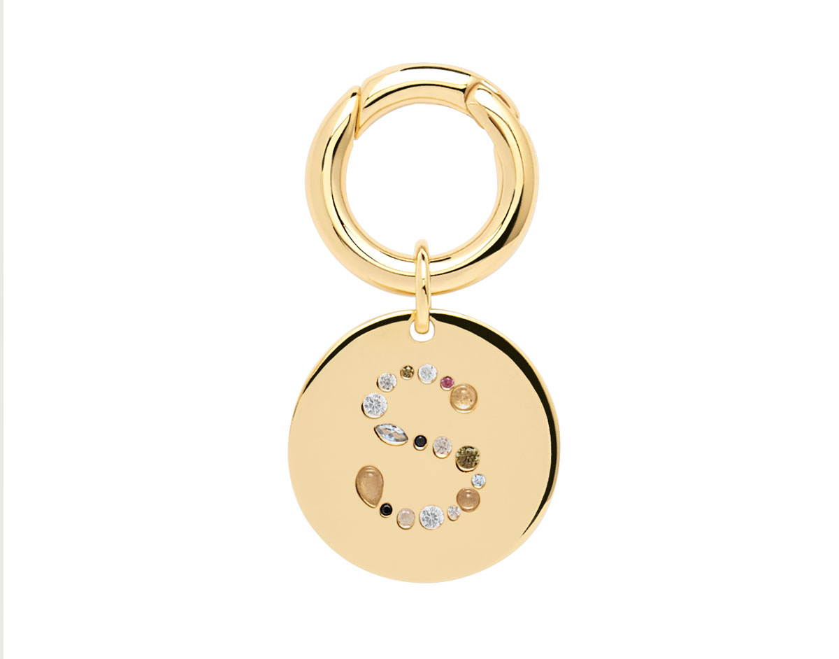 Labradorita, aguamarina y circonitas en infinidad de tonalidades dan forma a estas iniciales proclamándose como las protagonistas de estos charms que adornarán el cuello de nuestras mascotas, de una manera divertida y especial. Las piedras semipreciosas son talladas a mano y engastadas en un delicado disco bañado en oro de 18k.