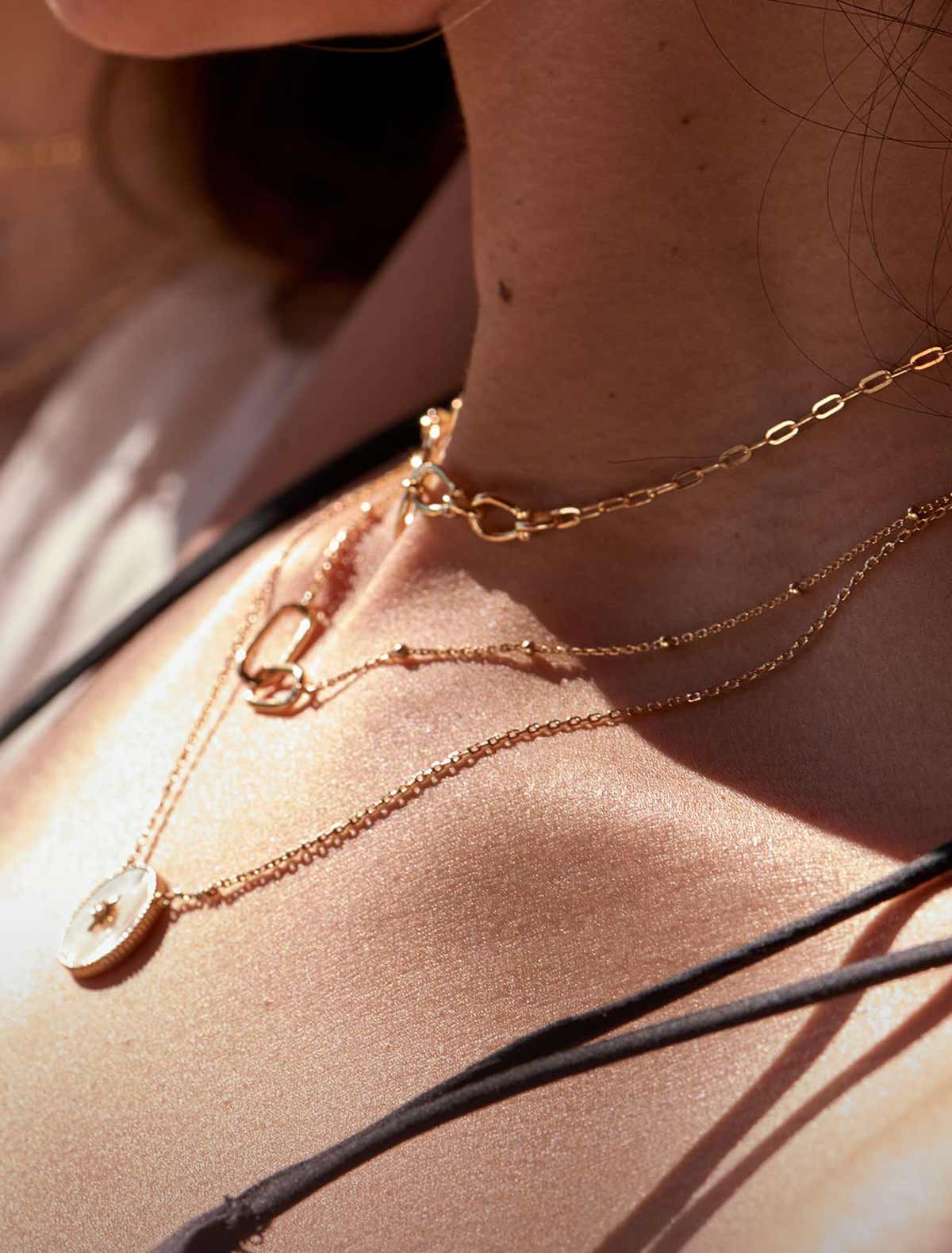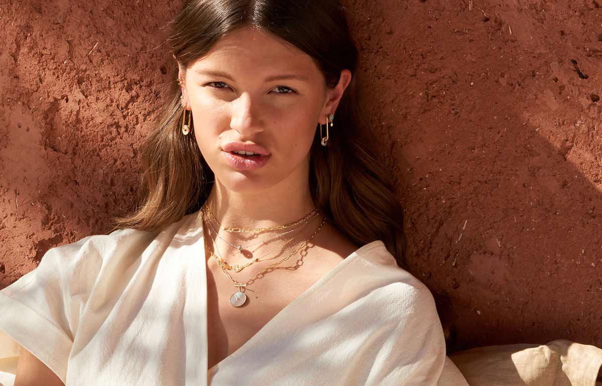 Todas sus joyas están diseñada en plata de ley 925 con baño de rodio, chapado en oro amarillo de 14 quilates o chapado en oro rosa de 14 quilates. Cadenas, medallas, anillos y aros en un estilo minimalista hacen de esta marca la mejor elección para convertir las joyas en un esencial.