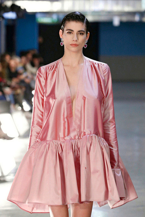 El diseñador Encinar, que también ha presentado su nueva colección en el marco de MBFWM, se ha inspirado en el final de la década de los 80 y principios de los 90: una época de ebullición artística y estallido de nuevas tendencias… aunque la colección se centra en la aparición del colectivo gitano en el panorama musical nacional, en como familias gitanas salieron de sus entornos marginales… El exceso en volumen y colores llamativos, los tejidos armados, los volantes o los vestidos con estructuras casi arquitectónicas han sido protagonistas de la colección, además de un único complemento: pendientes en forma de corazón, un símbolo adorado en el mundo de la joyería y tendencia desde hace unas temporadas que parece que también se une a la lista de estas tendencias a las que nos negamos a olvidar. Un detalle romántico con aires modernos que adornan la oreja de las modelos de Encinar.