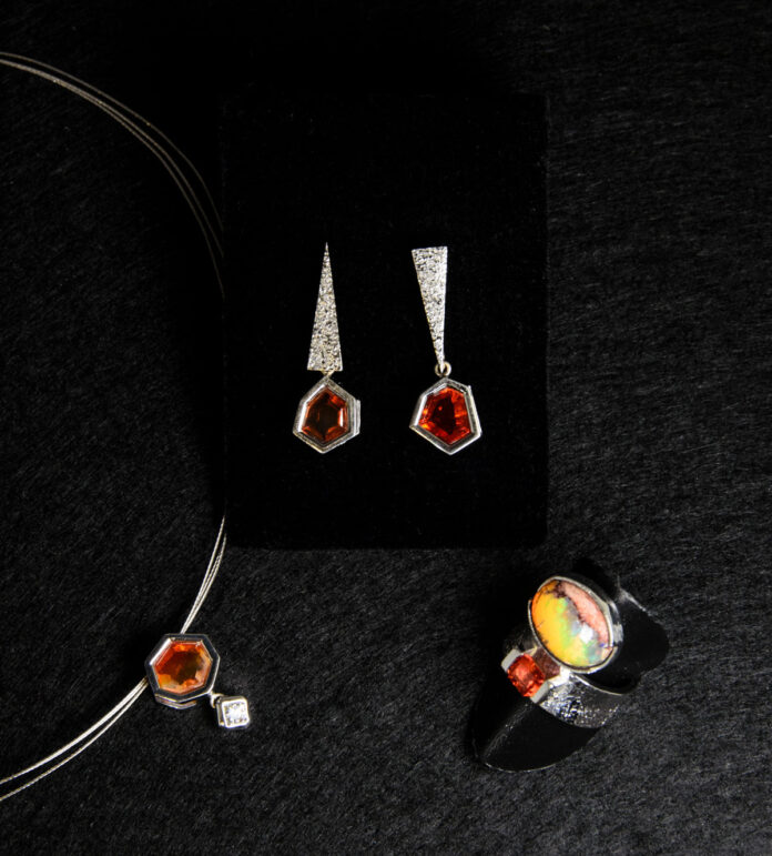 En el conjunto Hispania además destaca la textura en martelee en el oro y la originalidad de las joyas que, al mismo tiempo, ofrecen una facilidad para lucirlas. Otro dato sobre estas piezas es que el nombre que le da vida, Hispania, está relacionado con los ópalos de fuego, que transmiten esa energía y bravura, y el conjunto de colores del resto de ópalos, aportando unos matices artísticos muy especiales.