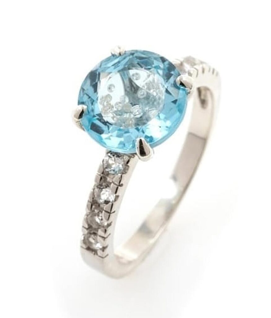 Anne Igartiburu ha apostado, una vez más, por lucir joyas de Lisi Fracchia para conducir el especial de «Corazón» en TVE1 sobre la gala de los Goya. La presentadora vasca lució un brazalete de la nueva colección Merida, que pronto veremos también brillar en una nueva película, y una sortija de oro blanco 18k con topacio Sky Blue, 18 diamantes y, en las zonas laterales, zafiros.