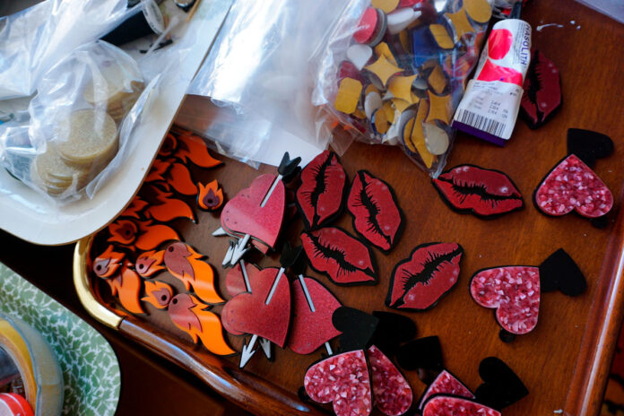 Cualquier cosa me sirve de inspiración; desde que estoy viendo una película o caminando por la calle, hasta cuando me compro un vestido y pienso lo bien que quedarían ciertos pendientes….a veces incluso he soñado cosas que después he diseñado. Sobretodo, desde que descubrí que al metacrilato se le podía añadir purpurina, papel, plumas…