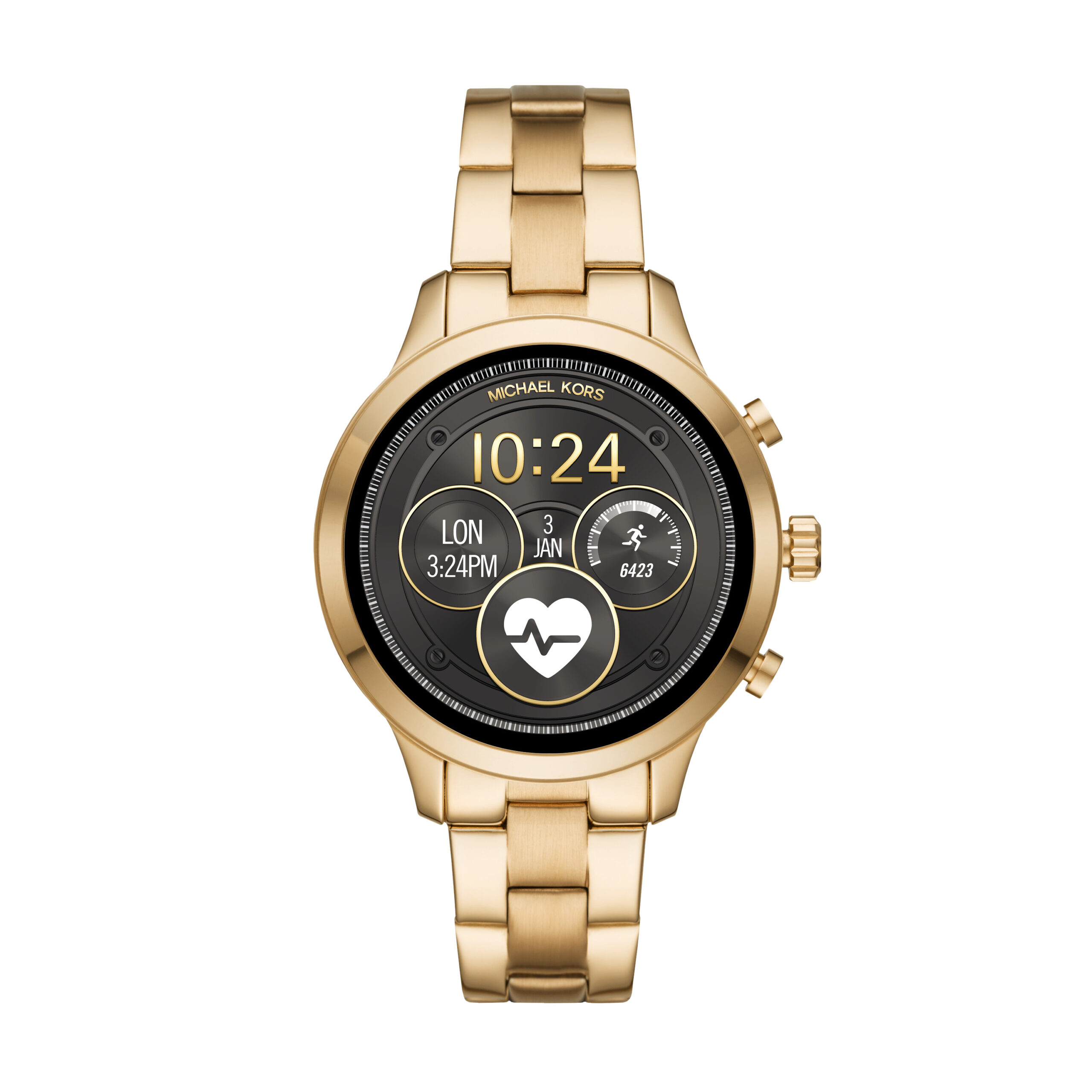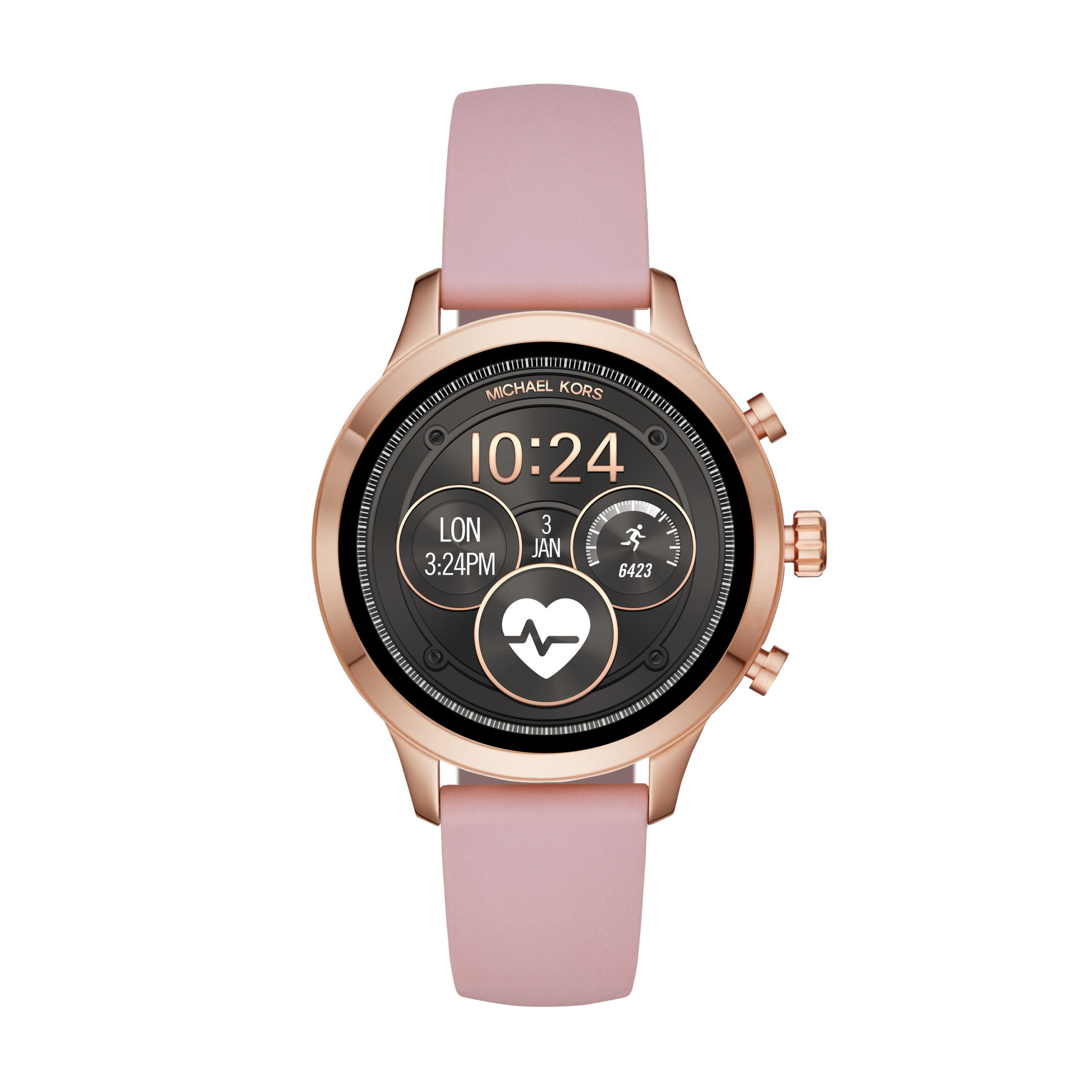 El smartwatch Runway está equipado para complacer todas tus necesidades, e incluye nuevos diseños de esferas digitales que se conectan con tu ritmo cardíaco y te permiten visualizarlo, por lo que facilitan la medición y el seguimiento. Además, las actualizaciones de la aplicación My Social (Mis redes sociales), una función que permite a los usuarios mostrar sus fotos de Facebook e Instagram directamente en sus relojes, te permitirá personalizar las esferas con fotos de redes sociales como pegatinas con temas de Michael Kors.