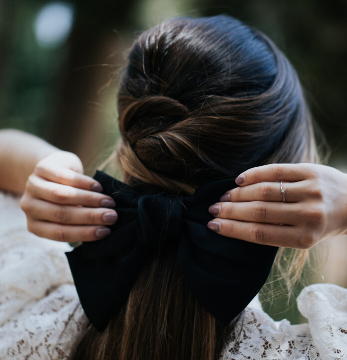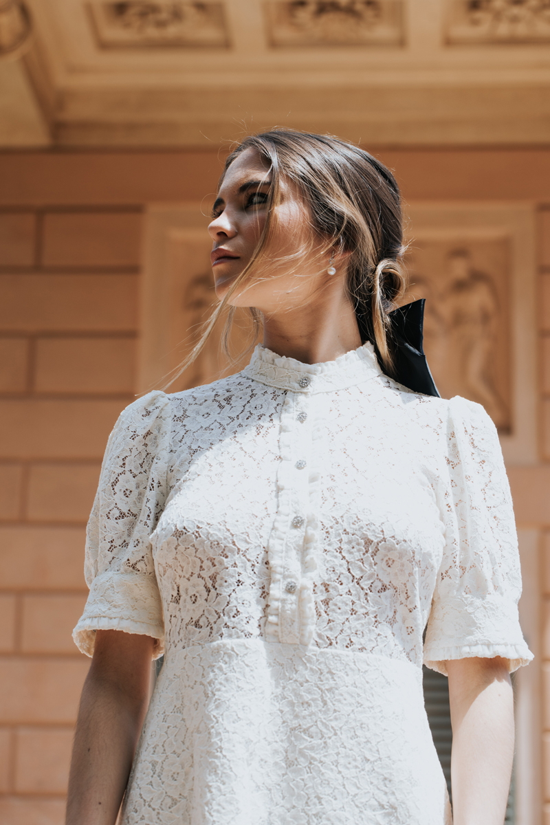 Es decir, un vestido de encaje, como si la novia quisiera ser princesa por un día, combinado con un maxi lazo, crean un estilismo ultraromántico con una dosis de personalidad.