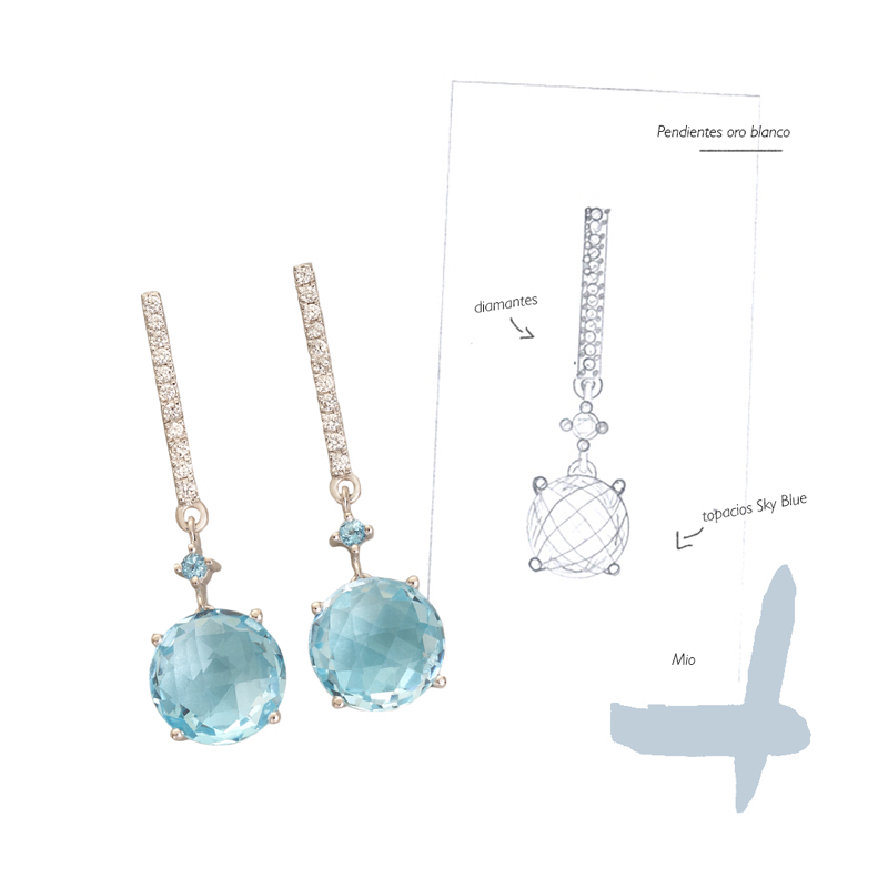 Diamantes, topacios Sky Blue y perlas dan vida a pendientes fabricados 100% en nuestro país que aportan ese toque único y especial a cualquier novia que busque cuidar hasta el mínimo detalle. Pendientes que hacen brillar y que, además, por su diseño, se pueden volver a lucir recordando un día tan especial en cualquier otro momento.