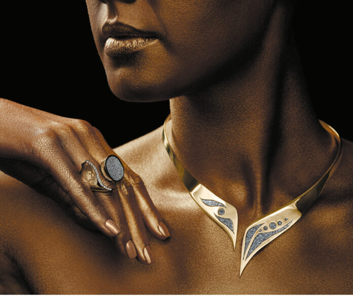 La forma más fácil de combinarlo con la joyería elaborada es engastar piezas 2D de osmio y formas definidas. Hay varias características de diseño que hay que tener en cuenta cuando se trabaja con este activo en joyería. Una de ellas es que las piezas individuales de osmio de la joya no deben tener barras demasiado finas, para que no se rompan al engastarlas. Esto abre un nuevo gran mercado para los fabricantes y orfebres. Por ejemplo, los laboriosos pavés de diamantes pueden ser sustituidos por una sola pieza cortada de osmio. Se hacen posibles diseños inusuales para relojes y colecciones que antes del osmio no eran factibles. En resumen, está surgiendo un nuevo mercado, porque el osmio realza todas las piezas de joyería. Su especial destello y su singularidad confieren un brillo extraordinario no sólo a la propia joya, sino también a la persona que la lleva.