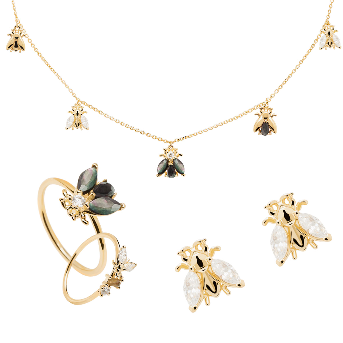 PdPaola lanza su nueva colección Zaza, inspirada en los virtuosos insectos voladores que mantienen la naturaleza en constante floración. La sutil belleza y fragilidad de estas pequeñas criaturas en cristales sobre madreperla verde, aludiendo a esas alas que agitan rápidamente y a la iridiscencia de los cuerpos de los insectos salvajes. Una colección especial en la que también son protagonistas delicadas circonitas blancas que se sientan como un sutil detalle ornamental sobre Plata 925 y un baño de oro de 18 quilates, evocando el centro de la vida en constante movimiento.