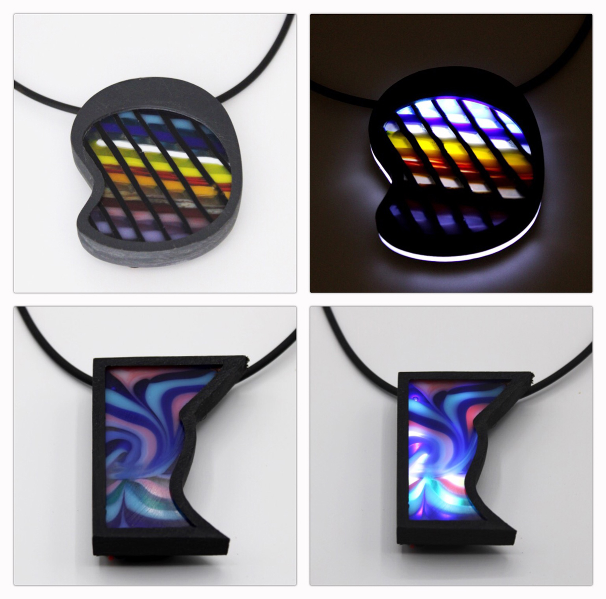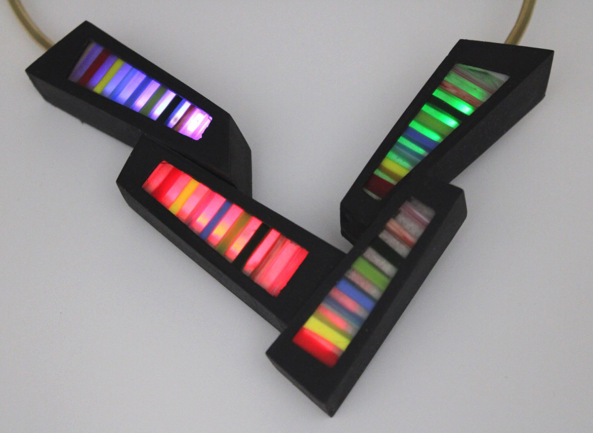 De esta manera, Pedro comenzó fundiendo diferentes bloques de vidrio que corta, talla y pule para, a continuación, realizar un diseño primero con lápiz y, posteriormente, con técnicas de 3D para así realizar los engastes. Una vez realzada esta parte, Pedro empieza a estudiar espacios y proporciones en los que encajar todos esos elementos y entre estos es donde se encuentra los diferentes sensores como la presión, la temperatura, la distancia, el movimiento, la luz, el sonido… y los emisores, como el led o los motores; en definitiva, «todas las señales se pueden re-programar con diferentes sketch de plataformas libres y así provocar respuestas diversas en estas joyas«.