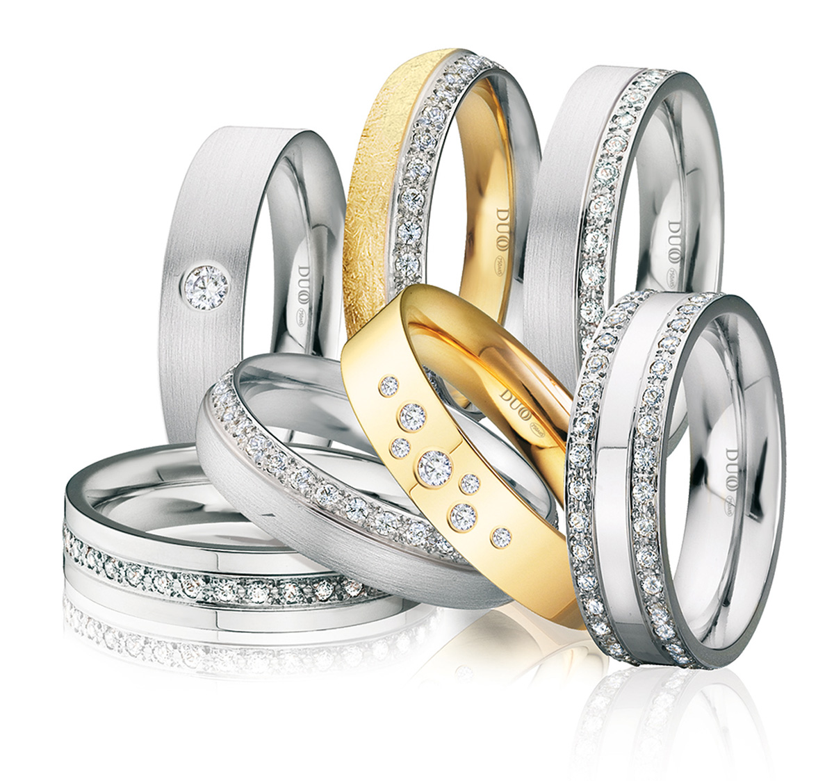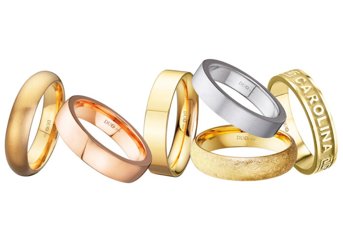 Duoo cuenta con cinco líneas de producto: Alianzas Classic, Trend, Luxury, Fusion y Personal. En todas ellas encontramos el oro amarillo, blanco o rosa como base de toda alianza, acompañadas de diamantes, diferentes acabados, combinación de colores e incluso personalización con vuestros nombres en la cara visible del anillo.