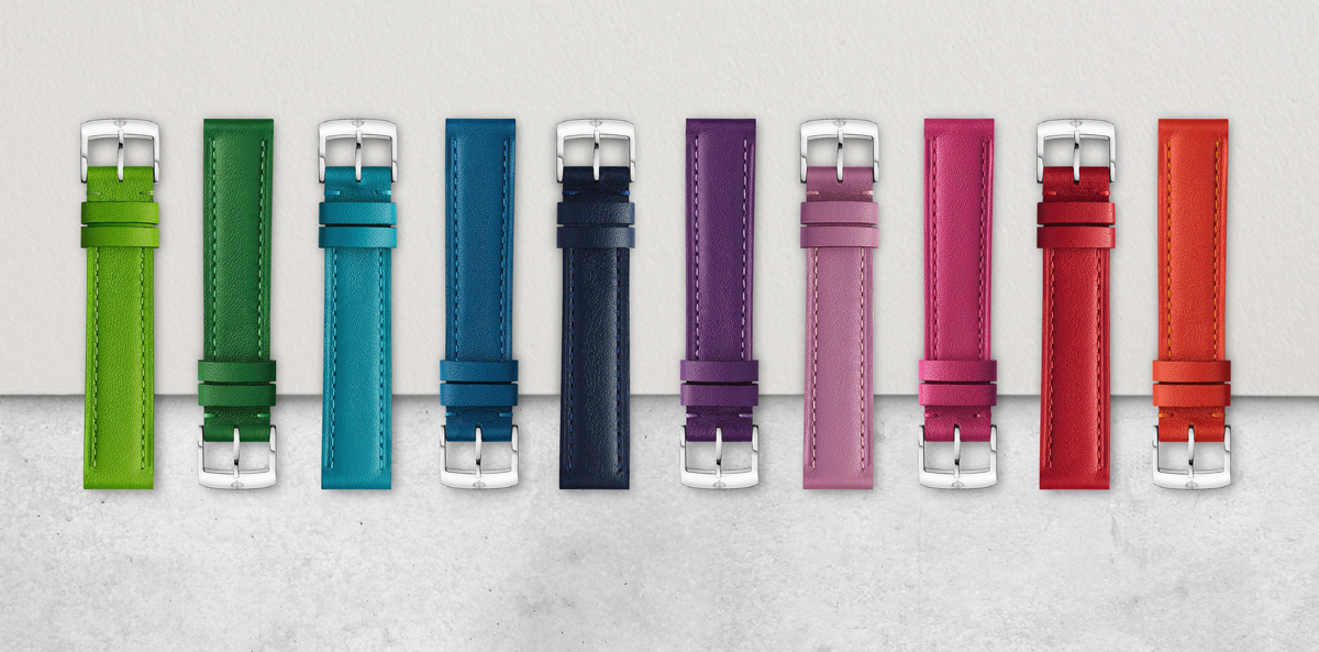 Esta colección, disponible tanto para las correas de piel como los brazaletes metálicos, ofrece un sinfín de posibilidades de combinación de colores y estilos.