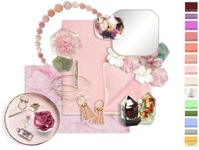 Entre el Art-Deco moderno y una influencia deluxe de los 70’s, el resultado es romántico, elegante y muy refinado. Las formas redondas, las terminaciones doradas y una paleta de tonalidades rosas crean un Universo primaveral, muy luminoso y de alegría para la próxima primavera.
