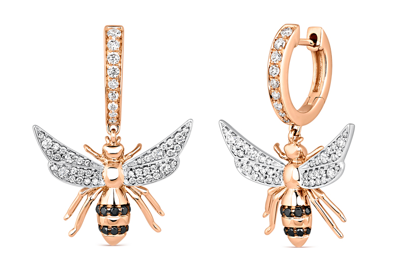 Realizada en oro blanco y oro rosa, los diamantes blancos y negros completan esta serie de joyas de Suarez con diseños inspirados en motivos florales, animales y otros amuletos.