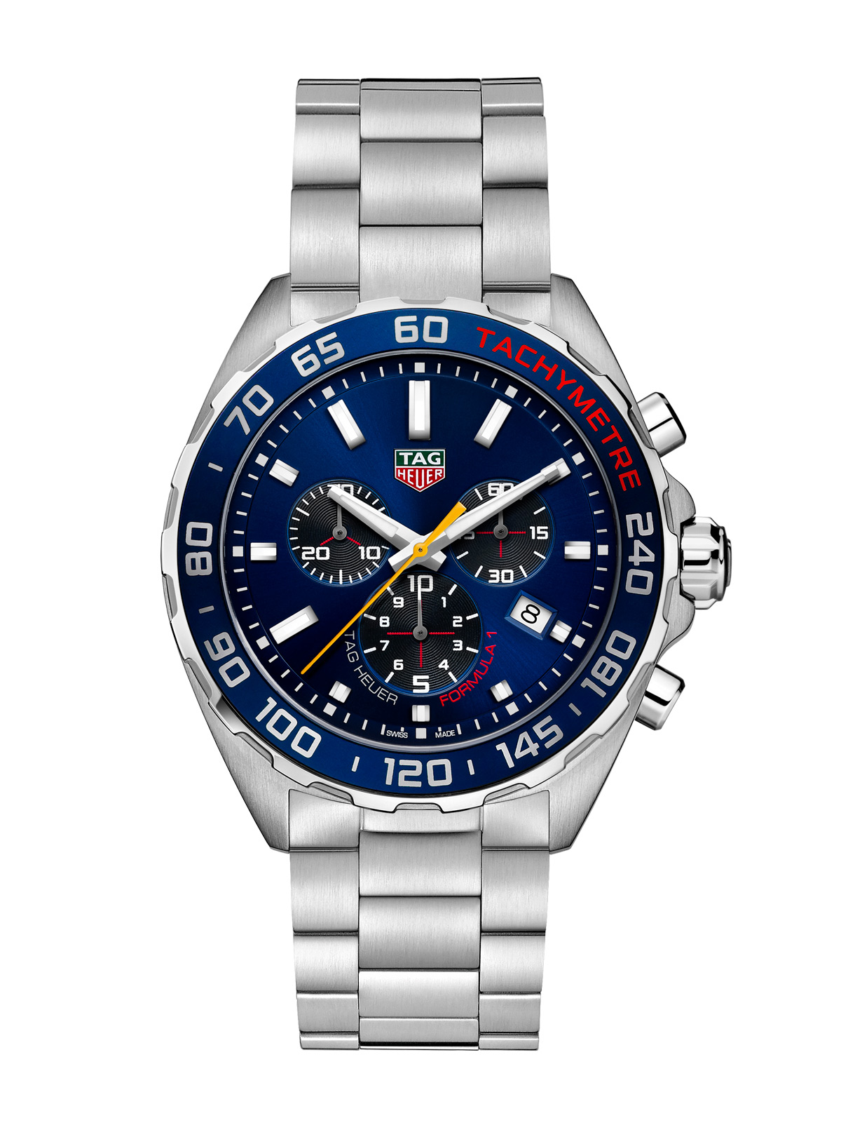 Creado en estrecha colaboración con el equipo de F1, el cronógrafo de 43mm de edición especial es juvenil, deportivo y legible en cualquier circunstancia. Proclamando la fuerza de esta unión, el renovado y elegante diseño del reloj está inspirado en el nuevo coche de Fórmula 1 del equipo Aston Martin Red Bull Racing, que ha sido presentado el 19 de febrero de 2020 en Barcelona. El azul intenso está presente en la esfera del reloj, así como en el bisel fijo de aluminio. La aguja de los segundos en el cronógrafo está revestida en un llamativo amarillo Red Bull mientras que, la escala taquimétrica cuenta con detalles en rojo Red Bull. El efecto azurage en los contadores del cronógrafo y la ventanilla de la fecha a las 4 resaltan la estética atrevida y deportiva de este modelo.