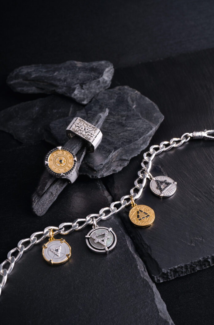Inspirada en la fuerza de los cuatro elementos, la colección de joyas masculinas Elements of Nature evoca la sed de aventuras y el vínculo con la naturaleza. Thomas Sabo plasma los elementos de agua, tierra, fuego y aire y los signos del Zodiaco correspondientes en minuciosas joyas geométricas, trabajadas a mano, que están concebidas para acompañar a modo de talismán al hombre que las luzca. Estas creaciones, entre las que se encuentran llamativos colgantes con motivos de brújula, potentes anillos de sello o pulseras con colgantes, están realizadas en plata de ley 925 y destacan por sus magníficos detalles como un exquisito look bicolor con chapados de oro de 18 quilates y apliques de piedra engastados a mano.