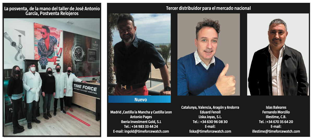 Optimismo que se comparte, pues Time Force, una vez decidida a devolver a las joyerías españolas “algo valioso, familiar, fresco y emocionante” no está dejando nada al azar. Y es que una de las primeras bases de una labor relojera bien hecha es dotar a la marca de los instrumentos posventa más expertos, de ahí que José Antonio García, que dirige uno de los talleres relojeros más respetados de este sector, se haya convertido en el servicio oficial de Time Force para cualquier reparación y ofrezca repuestos para incluso toda Europa respecto a las nuevas colecciones de la marca. Desde Galicia vuelve a surgir otro de los pilares claves de una firma relojera que se ha empeñado en reconquistar el corazón del mercado español con mucha “mentalidad Time Force”.
