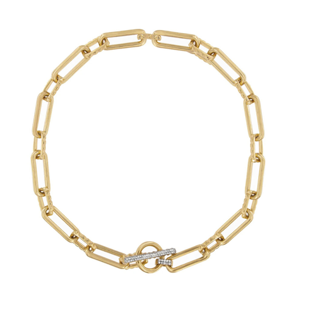 Es definitivo, las joyas en eslabones son ya casi un must. Su éxito el año pasado las ha llevado a ello. El exceso de los años 80-90 nos sigue conquistando, la década de los 2000 está más presente que nunca… así es que que los eslabones, en todos sus tamaños y formas, son de nuevo el favorito y confirman que han llegado para quedarse.