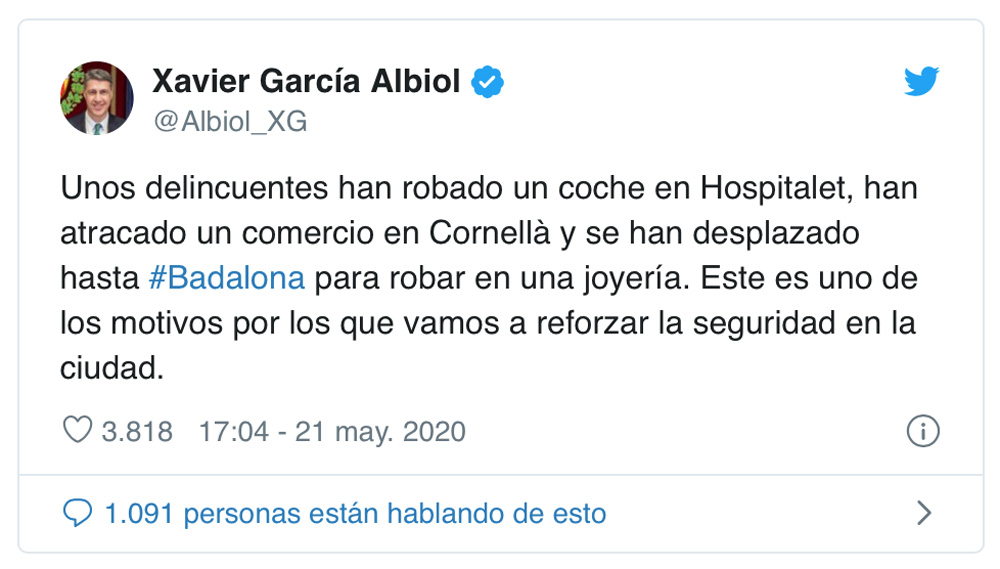 Aunque el alcalde de Badalona Xavier García Albiol ya ha confirmado a través de su cuenta de twitter la relación con el caso de Cornellá y también ha añadido que el coche que usaron los ladrones para desplazarse, también era robado. Ante esta situación, que facilita este tipo de sucesos, el alcalde confirmaba que aumentaría la seguridad.