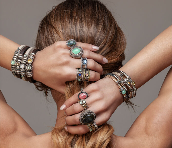 Sus nuevas propuestas que nos animan a apasionarnos por los complementos y a gozar de su lenguaje pleno de colores que nos transporta al mar, a la tierra, al fuego y al aire. Los cuatro elementos de la naturaleza plena en un discurso de belleza articulado con plata y piedras semipreciosas: calcedonias, cuarzos, onix, rodocrosita, labradorita, citrino… Y el espectacular triplete: piedra luna, cuarzo y onix. Materiales y colores que realzan el cuerpo humano, y unos diseños que evocan en la piel un eco precioso sobre nuestros orígenes como seres humanos.
