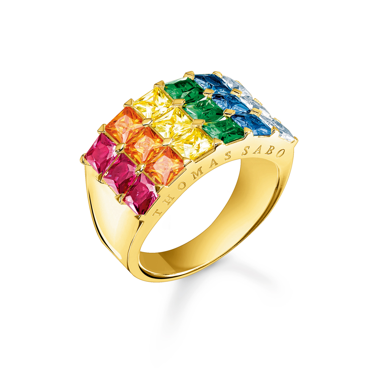 Rosa, azul y naranja con un toque dorado y plateado: los colores del cielo durante la puesta de sol son la inspiración de la nueva gama Rainbow Heritage. Thomas Sabo captura la energía de la hora dorada en diseños deslumbrantes. Las protagonistas de esta colección son las joyas de estilo atemporal, como las cruces, los aros, los anillos y los colgantes geométricos grabados, algunos de ellos con un baño de oro amarillo 750. Las piedras preciosas talladas y engastadas a mano en los colores del arcoíris, como el rosa, el azul, el verde, el naranja o el violeta, le dan un toque radiante y mucho brillo a los diseños de talla princesa cuadrada o baguette de estas joyas.