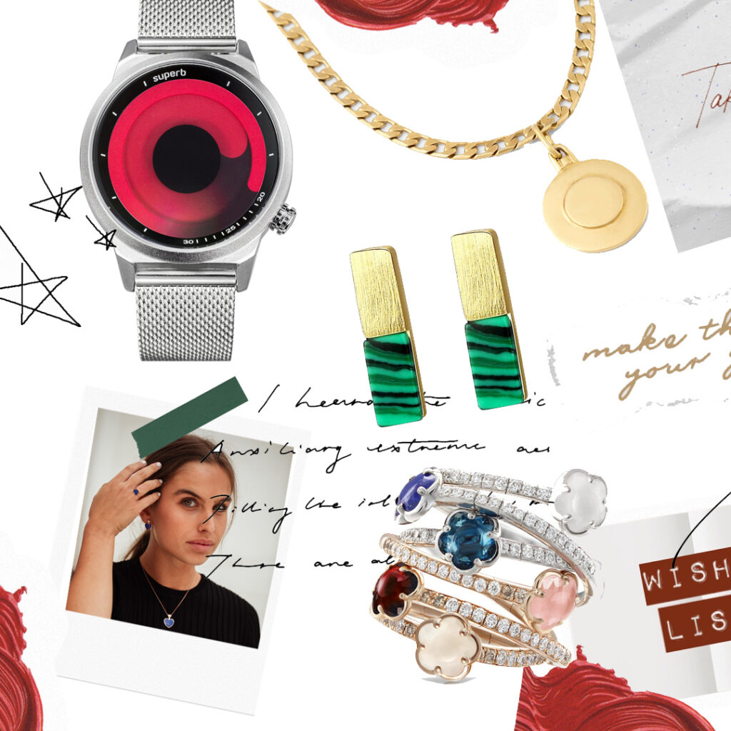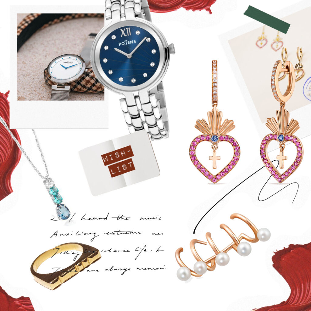 Un clásico reloj de Potens, con un diseño elegante y sofisticado; unos pendientes de Suárez que expresan amor incondicional, unos pendientes de Gold & Roses para aquellas que cuidan hasta el último detalle, un colgante de Victoria Cruz para las que buscan una joya 24/7 y un anillo sello de La Cabellera de Berenice que rompe reglas y que es muy, muy especial.