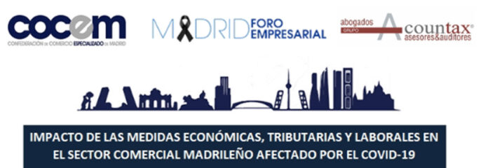 Mañana tendrá lugar una webinar para el sector comercial de Madrid con COCEM. Se titula “El impacto de las medidas económicas, tributarias y laborales en el sector comercial madrileño afectado por el COVID-19 y ha sido organizado por la misma Confederación de Comercio Especializado de Madrid (COCEM) junto a Madrid Foro Empresarial y la firma Acountax Madrid, grupo de abogados asesores y auditores. El horario es por la tarde, a las 17:00 h.